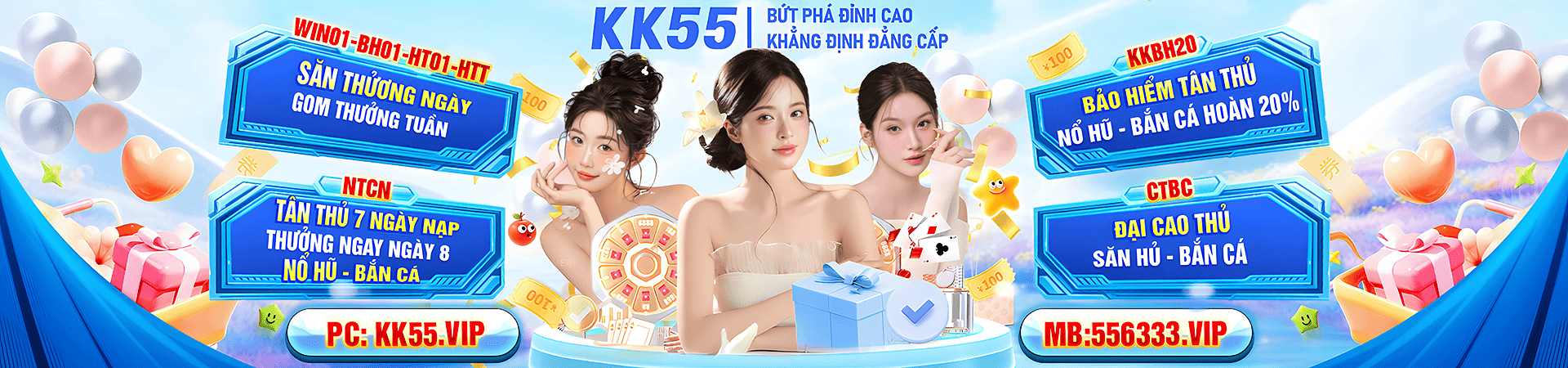 KK55 được biết đến là một trong những nhà cái quốc tế uy tín hàng đầu thị trường hiện nay, chính thức mở cửa đón hội viên vào đầu năm 2026 đem đến cho bạn được trải nghiệm với nhiều trò chơi đẳng cấp hấp dẫn như: Casino, Game Bài, Bắn Cá, Nổ Hũ, Thể Thao, Xổ Số,… và nhiều trò chơi khác cùng những ưu đãi hấp dẫn mà KK55 Com đem đến cho bạn và người dùng. Tải App và Đăng Ký KK 55 ngay đừng bỏ lỡ nhiều ưu đãi nhé!!!!